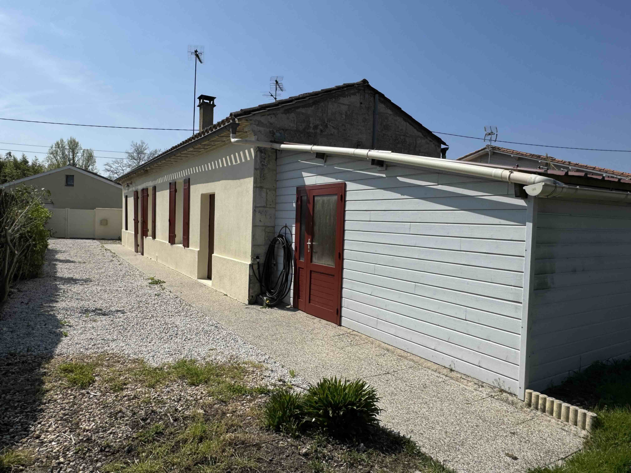 Maisonnette indépendante de plain pied située sur un petit terrain bien ensoleillé. Cette maison de 3 pièces (T2 BIS) de 47,54m2 dispose d'une cuisine + salle à manger (cheminée insert), d'un salon, d'une chambre et d'une salle d'eau + WC. Le bien est propre, lumineux et au calme d'un petit chemin sans passage. Une chaufferie et un chai complètent le bien. Double vitrage, chauffage électrique. Disponible actuellement.